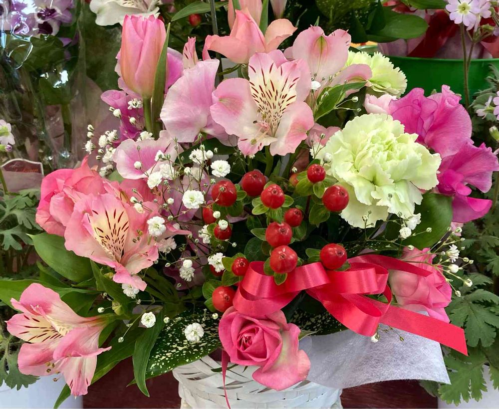 店頭に飾られたアレンジメントのお花、春らしくて、見ているだけでウキウキしました💐🤗🎶💕
