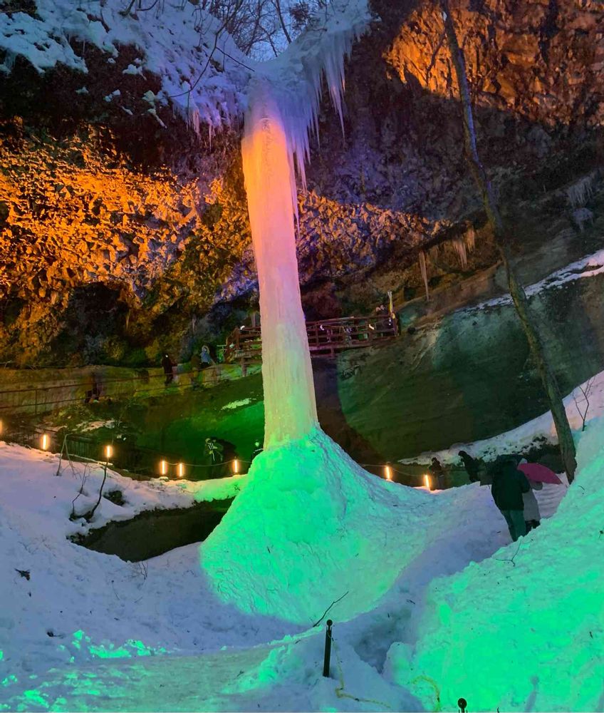 今年は結氷する滝を見られなかったので、昨年のpicを紹介。見事につながった滝!ライトアップ効果もいい感じで、ホント神秘的♡