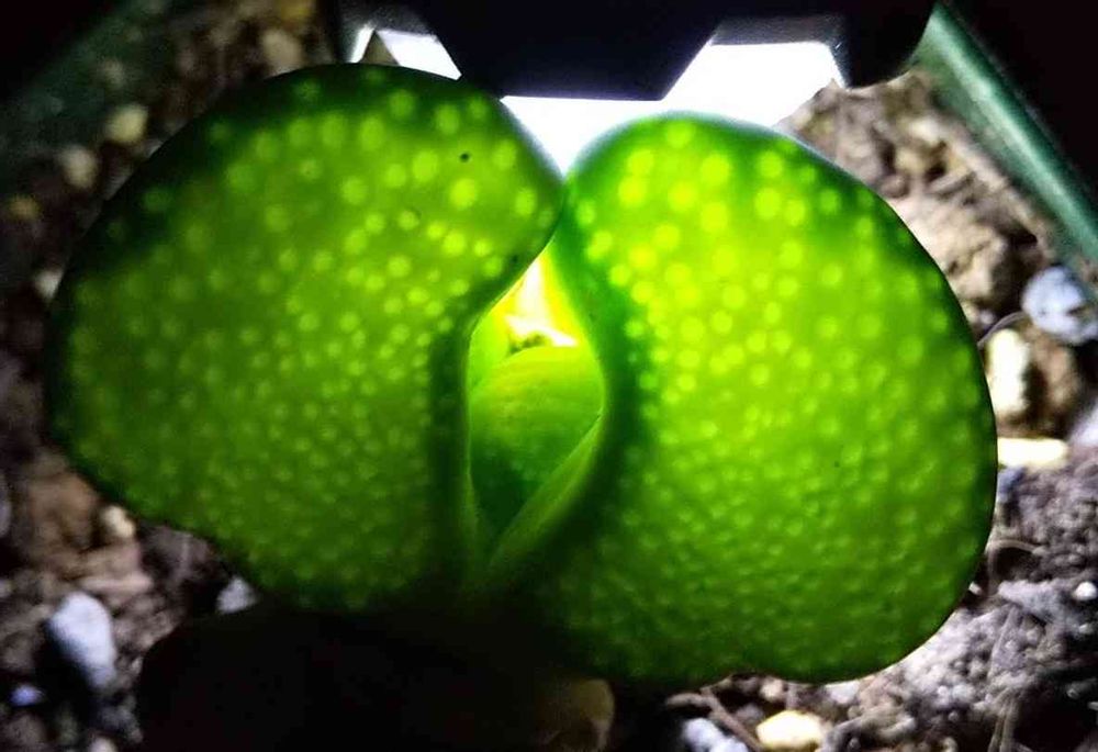 夜のリトープスをライトで透かしてみました!一度やってみたかったのです。もっと窓の模様が複雑だと面白かったかもしれません。