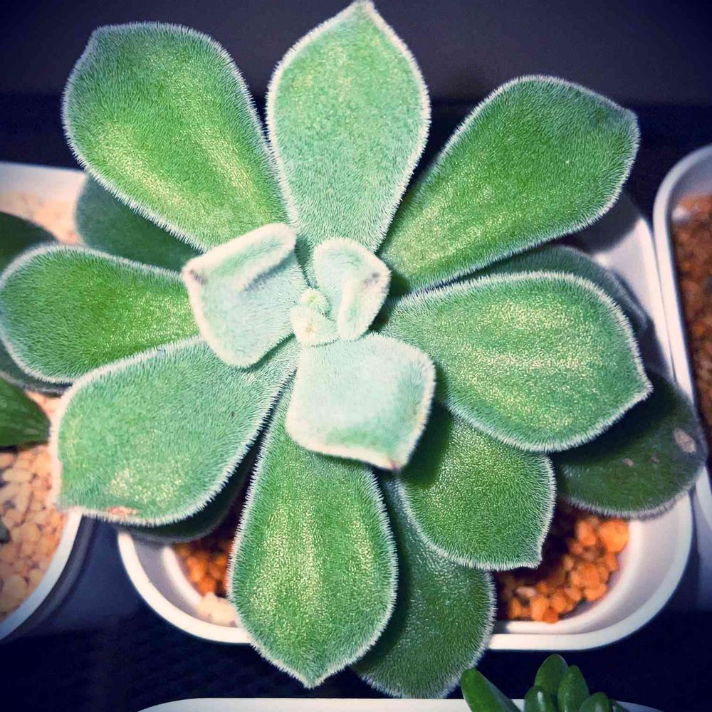 夜のフロスティさん🌠植え替え完了。かなり大きくなって根本に子株も出てます😆