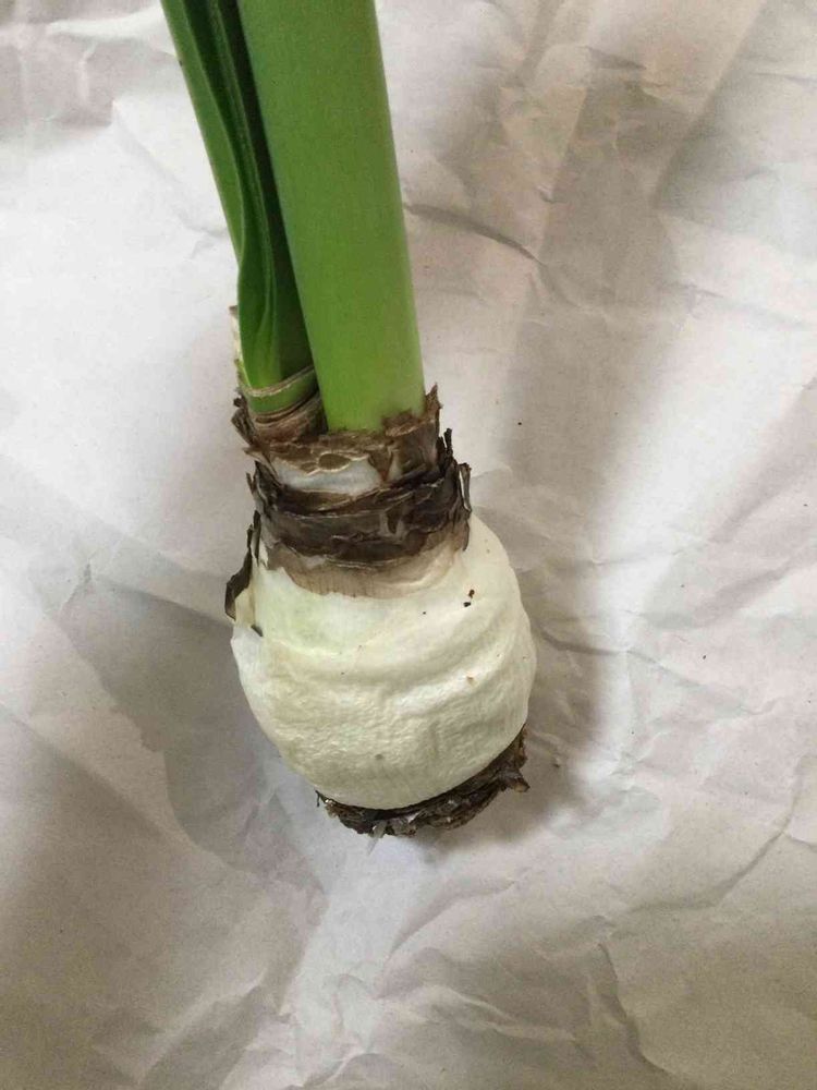 マジックアマリリスの球根部分。触るとスカスカなので黒くなった表面を取ったらこんなに小さくなっていました。