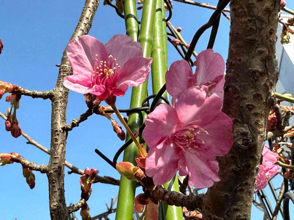 我が家の鉢植えの河津桜がだいぶ咲いてきました♪
