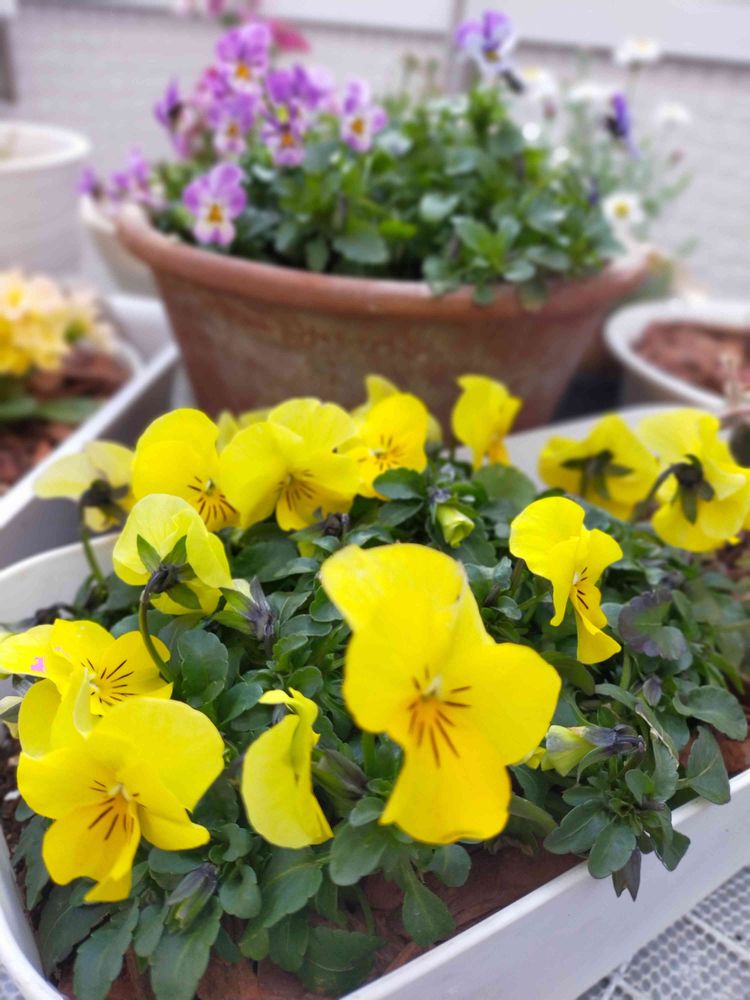 黄色ビオラちゃんがモリモリ咲いてきました✨💕