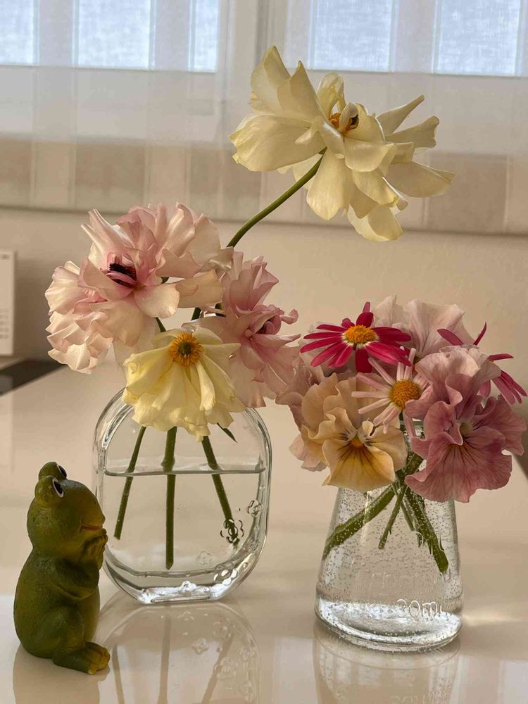 🐸ちゃんもテーブルで愛でています❣️😍😍