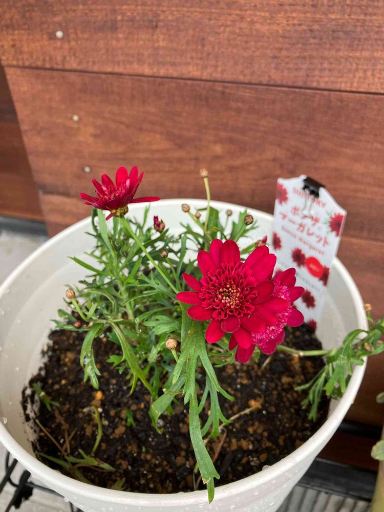 ホームセンターでボンザマーガレットルビーを見つけました。近所のホームセンター、品揃えはいいけど管理が微妙でどの子も元気がない…💦我が家で大切に育てます。