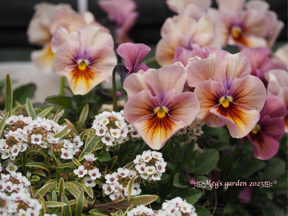 ブロンズシェード 小輪パンジーナチュレとスーパーアリッサムのハンギング♬