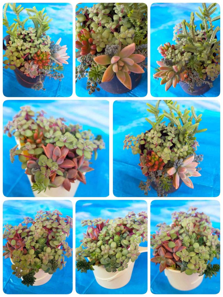 紙コップホルダーを花器に使用するのもアイデア💡ですね。寄せ植えがいっぱい❣️❣️