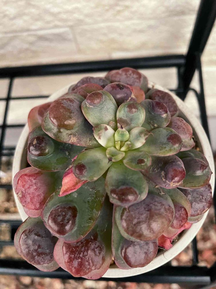 カーポートの下にずっと置いていたら葉数はカリカリに減ってるし徒長気味だし紅葉さめて来てた🥹
