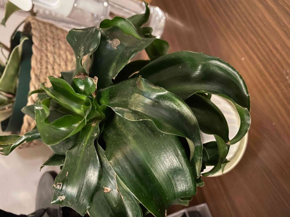 猫にかじられてボロボロですが、ぐるぐると縁を描くように葉が巻いています。名前がわからないので教えてください。