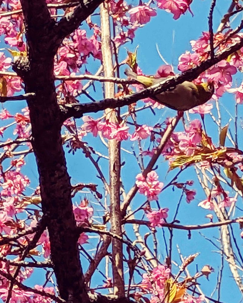 青空と河津桜 メジロ