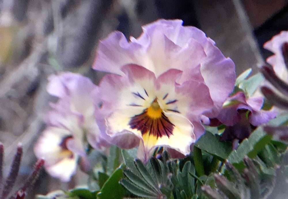 12月に植えて やっと咲き始めたフリル咲きビオラシャルロット