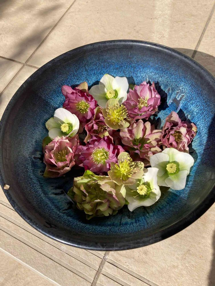 器のお色とクリスマスローズのお色がとても綺麗ですねー!