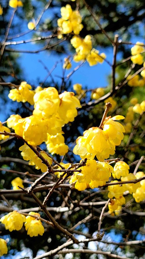 この蝋梅だけ日があたっていてあめ玉がついてるみたいで光ってました✨ 撮ったのはスマホ📱で~す お日さまにだいぶ助けられました😅