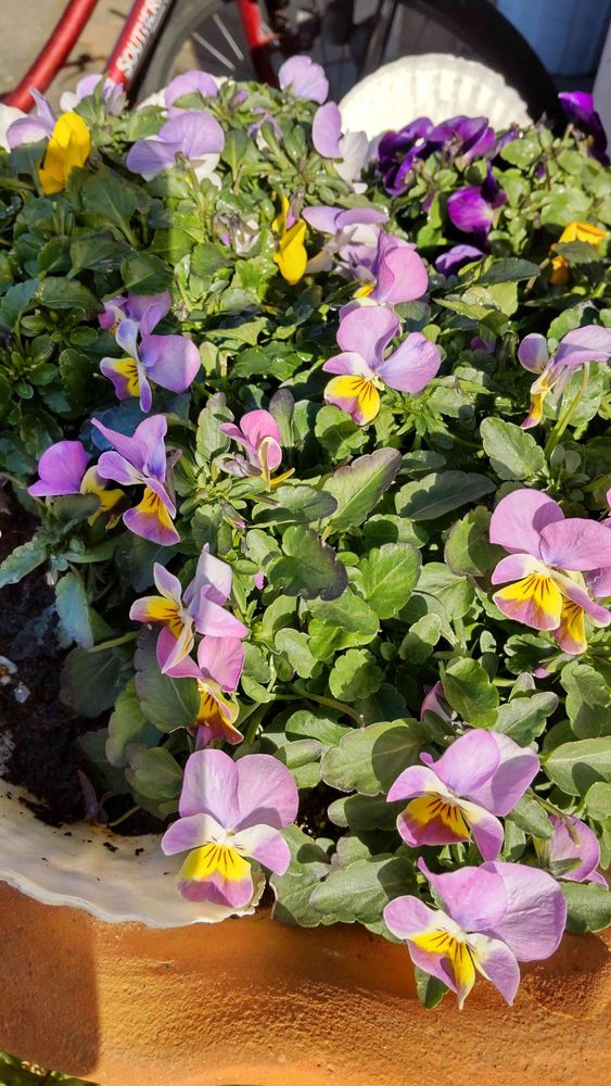 冷たい風が吹いてるけど、元気な、ビオラ💜💗💚