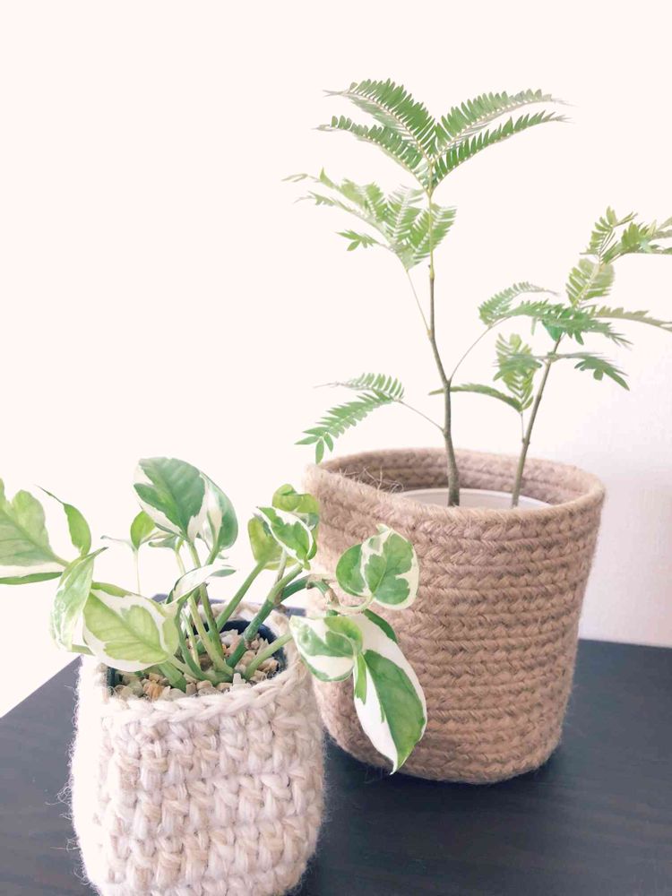 鉢カバー可愛いですね〜😍麻ひもで編んであるのかな?