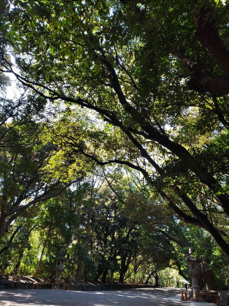 しめ縄をかけた巨木が所々にあって 長いこと見ていました。