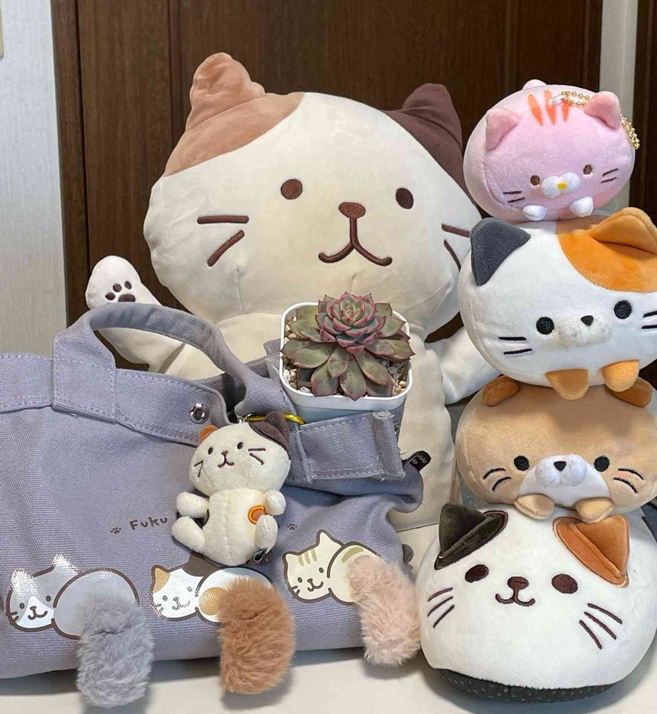 実はバックについてるコも、後ろのでっかいニャンコもなんだけど、ふくふくにゃんこ というキャラクターなんです💕