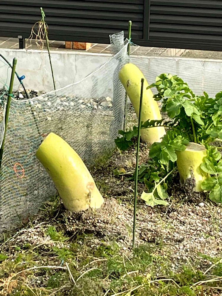 通り道の畑に太い大根があり、葉は切り落としてありました。