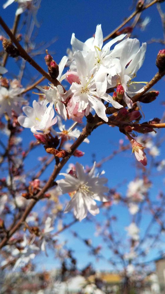 今日はお天気良く、青天のもと「カンザクラ」のお花が鮮やかです。💙🌼😊😄🤗🌞👌