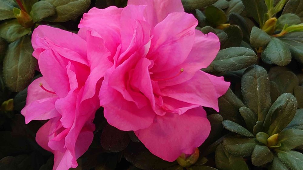 アザレアは19世紀初頭に、ベルギーを中心としたヨーロッパで、室内観賞用の鉢物として改良された常緑性ツツジの総称です。