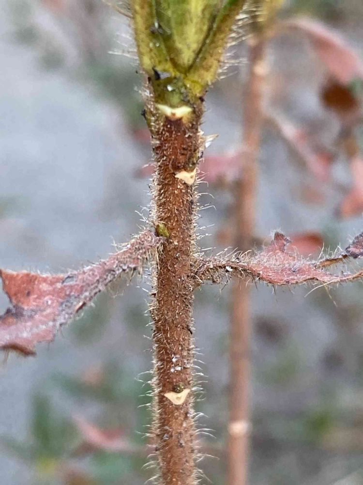・モチツツジの葉や茎がネバネバするのは、これらに生じる腺毛から粘液が出ているため。これは葉茎に限らず、花の付け根、萼、子房、果実なども同様で、虫の攻撃から身を守る。