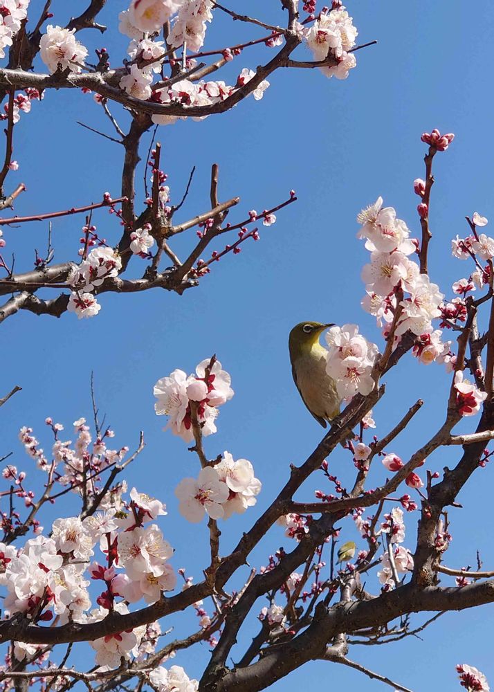 こちらの梅園は広いので、人も密集しておらず、のんびりお食事中🌸🌿🐦
