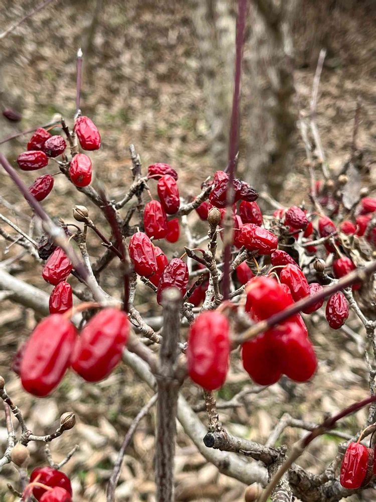グミに似た赤いサンシュユの実は食べることが出来ますよ❣️