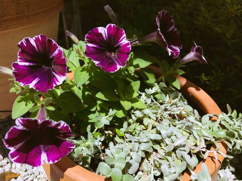 切り戻ししていたペチュニアがつぼみを付けて咲き始めています💜