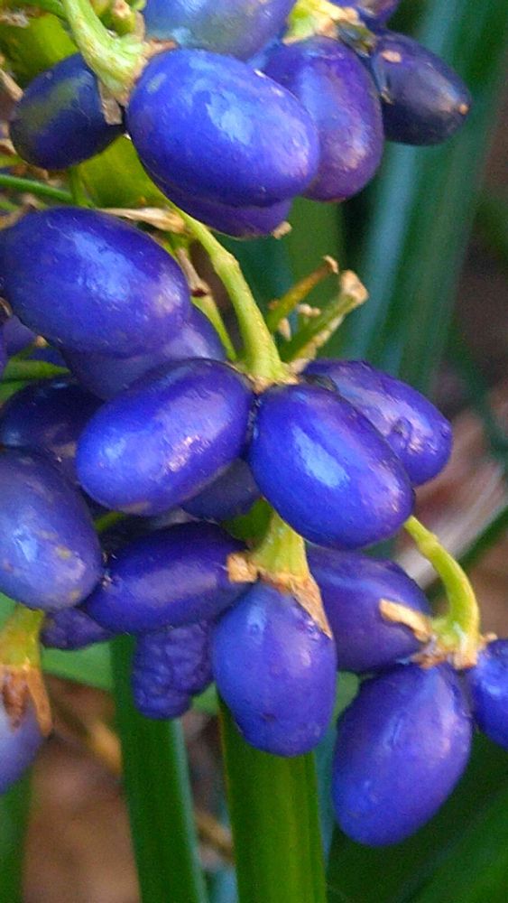 ノシランの実が、やっと鮮やかなブルーになって来ました。