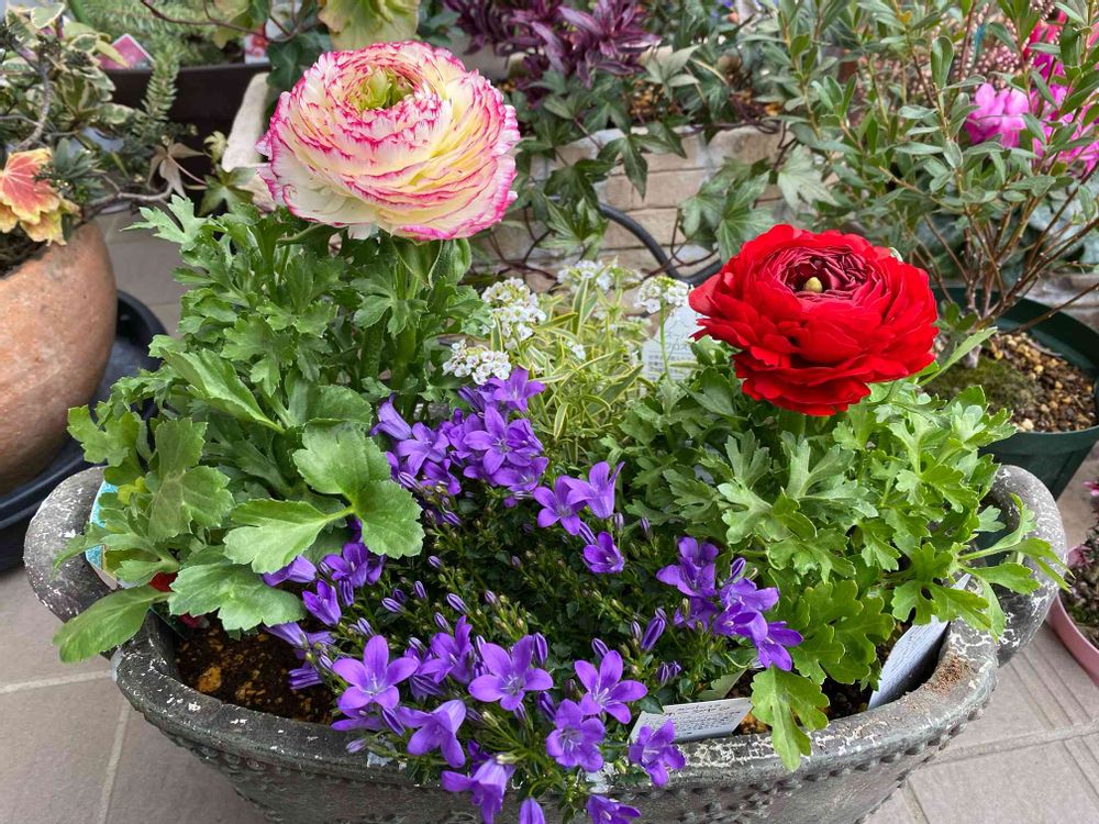 隙間をカンパニュラ オーシャンで埋めて、後ろにスーパーアリッサムを入れてみました。