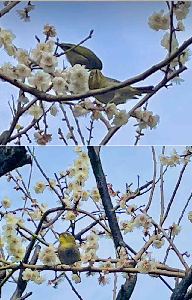 お出かけ先,白梅,白梅とメジロの投稿画像