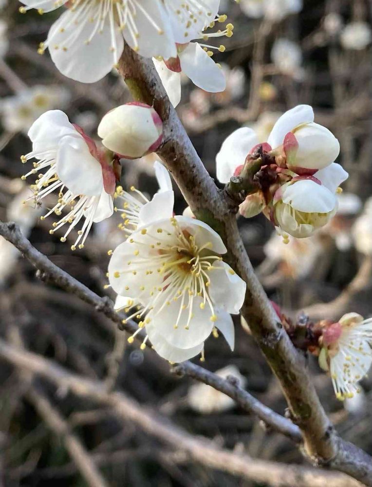 おはようございます! 梅❣️ 我が家の梅も咲きました!蕾もぷっくら!おばあちゃんが梅干しにします🥰