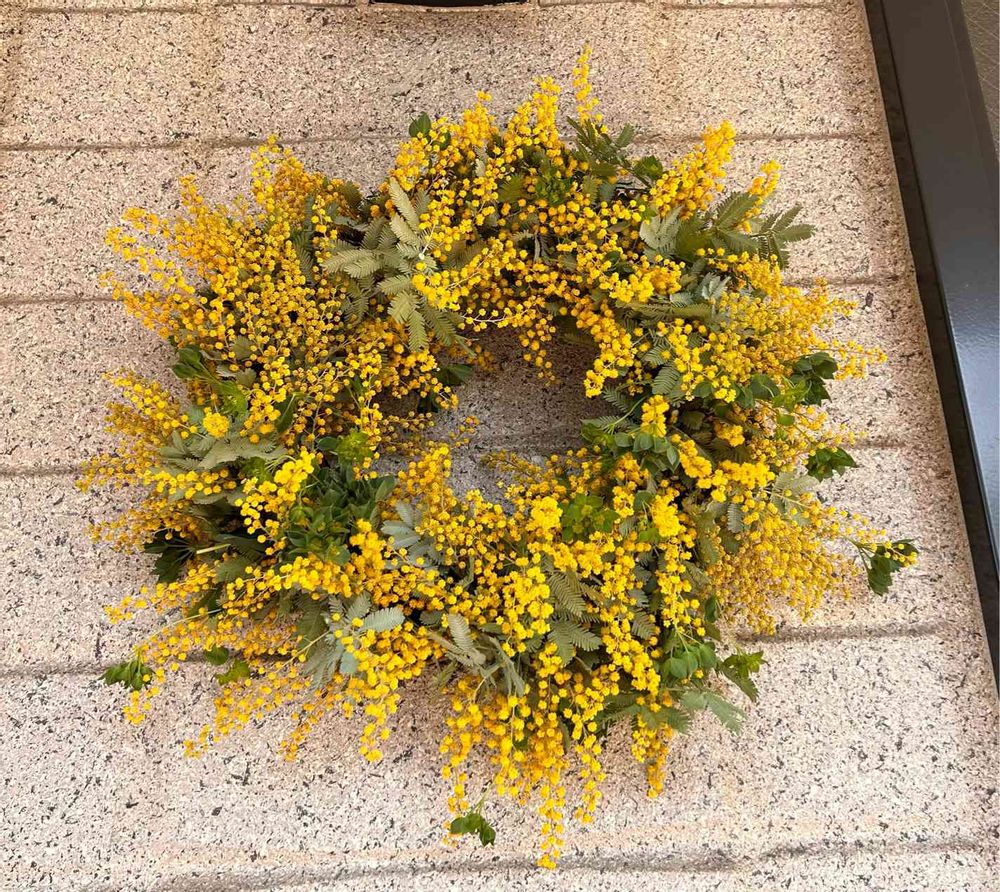 pechaさんのエントランス,ミモザ,手作りリースの投稿画像