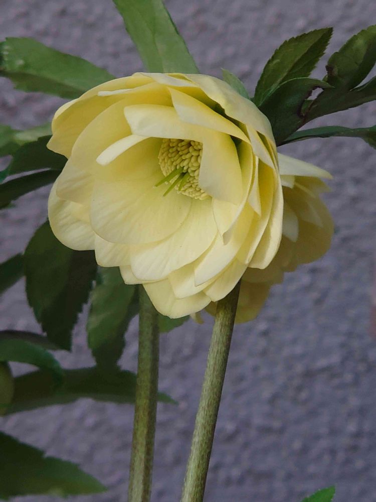 ウィンターシンフォニーファーストのレモンイエローダブルが咲きました。