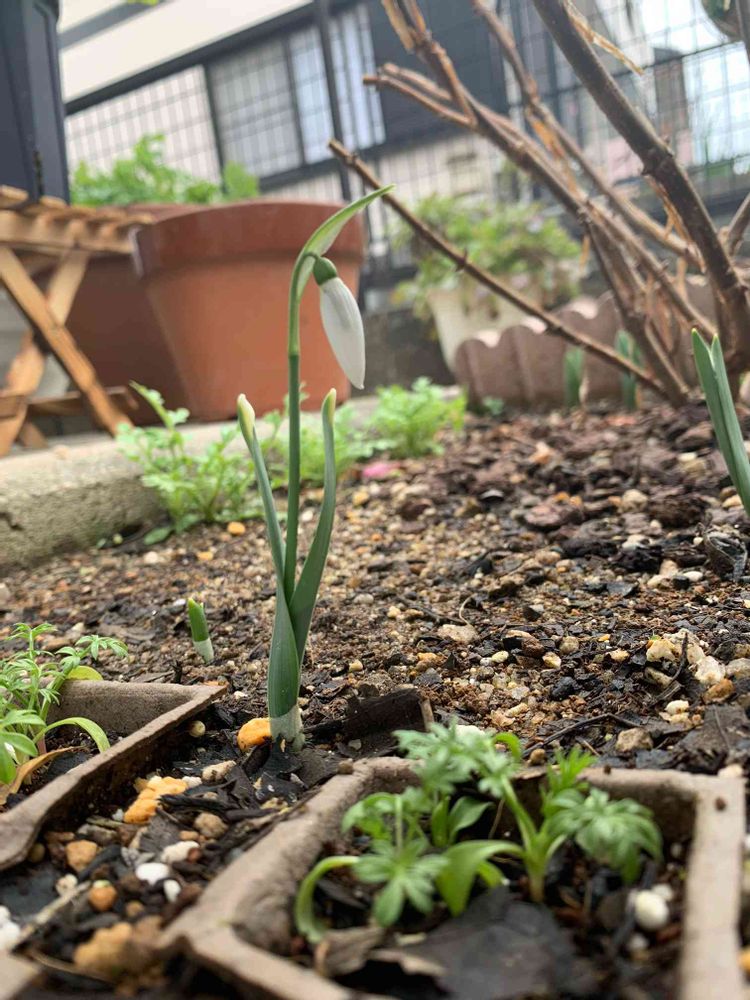 秋に球根を植えたスノドロちゃんが無事に5つ、全部顔を出してくれたのが嬉しいのです♡