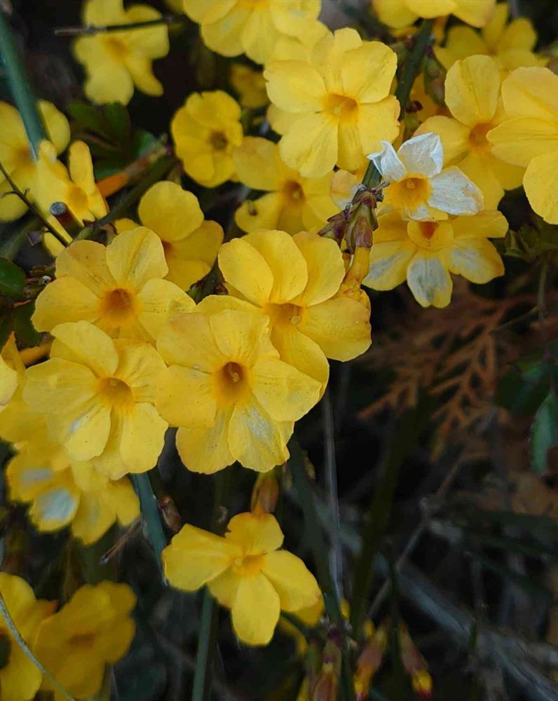 娘宅近くに咲いてる黄梅(オウバイ)です。雲南黄梅のようです。松戸は横浜に比べて街に花が少ないです。
