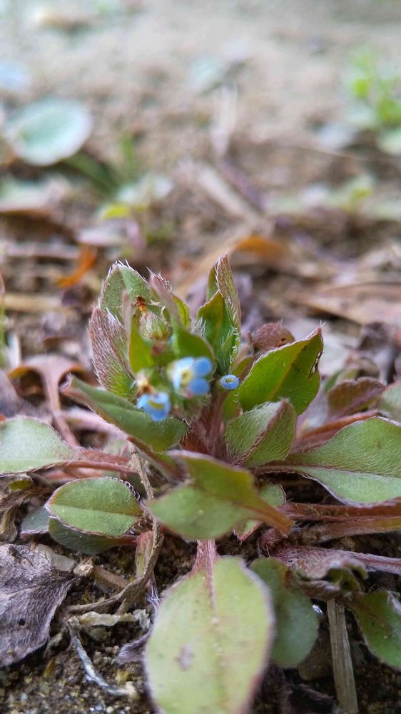 跪いて接写モードのスマホを覗いて見るとキュウリグサでしたよ🤗