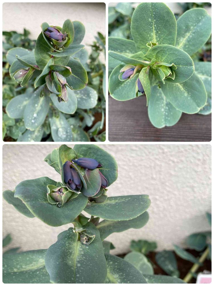 軒下の花壇の種から育てたセリンセマヨール💙💜蕾でました🎶