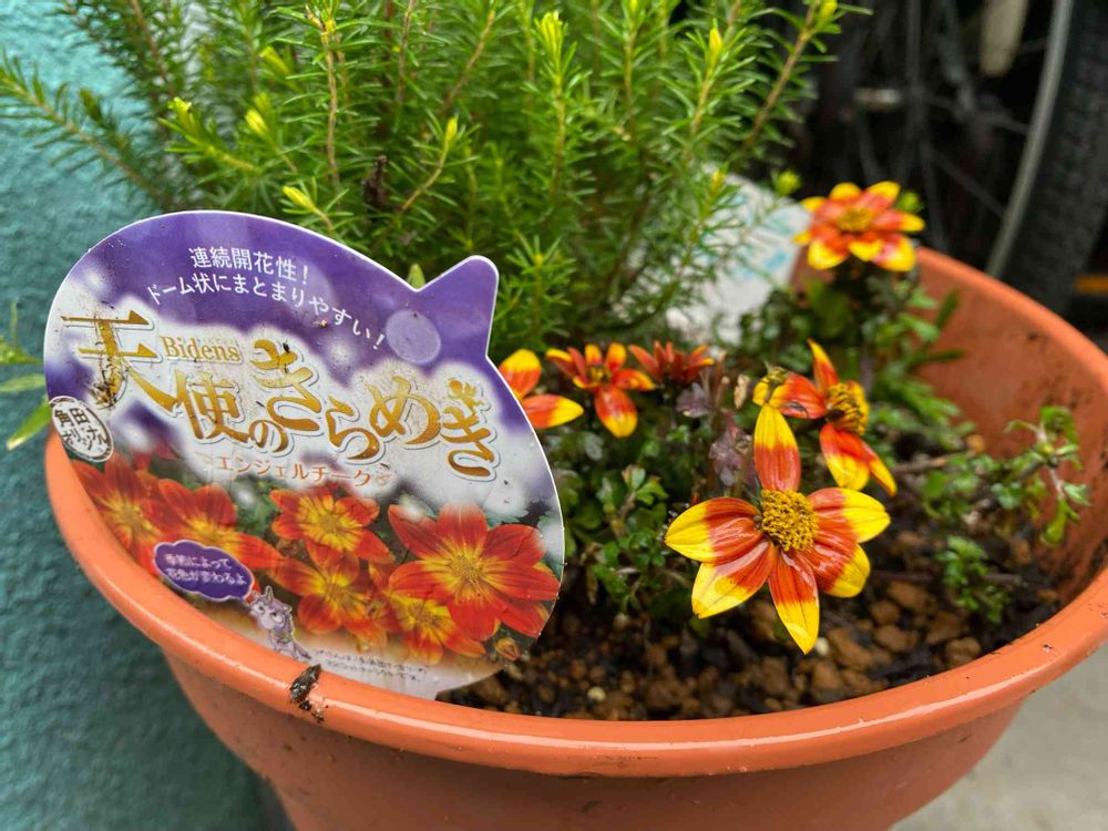 昨日ホームセンターで税込200円で安くなってたのでかいました。ビデンス、天使のきらめき。色が季節によって逆さまになったりするみたい。育ってくれると嬉しいなぁ。