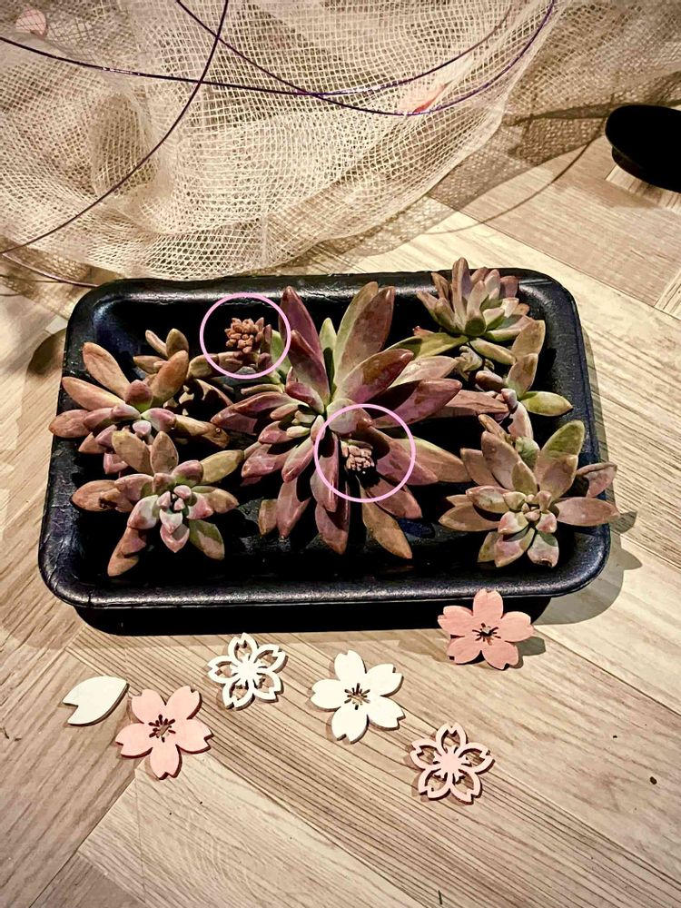 似たような多肉ちゃんが何種類かごちゃごちゃ植え込んであるのですが、白い花を咲かせる子もいます🥰