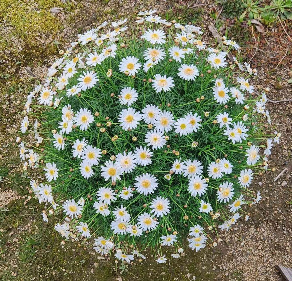 真っ白い真ん丸のマーガレット🤍🤍🤍