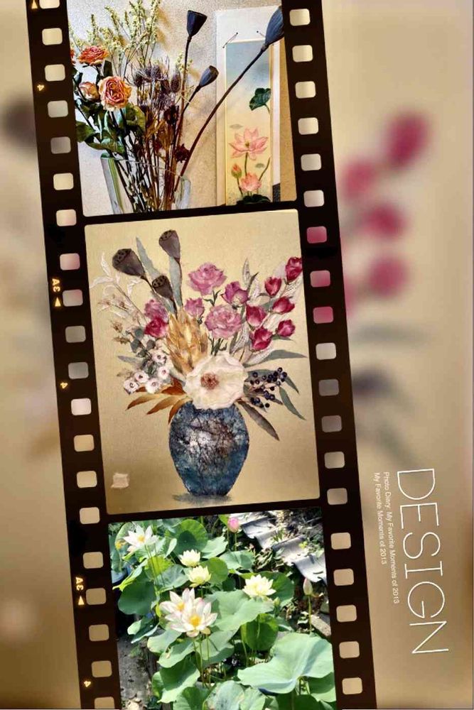 茶碗ハス🪷と自分でつくったバラのドライフラワーをガン見して作成しました✨