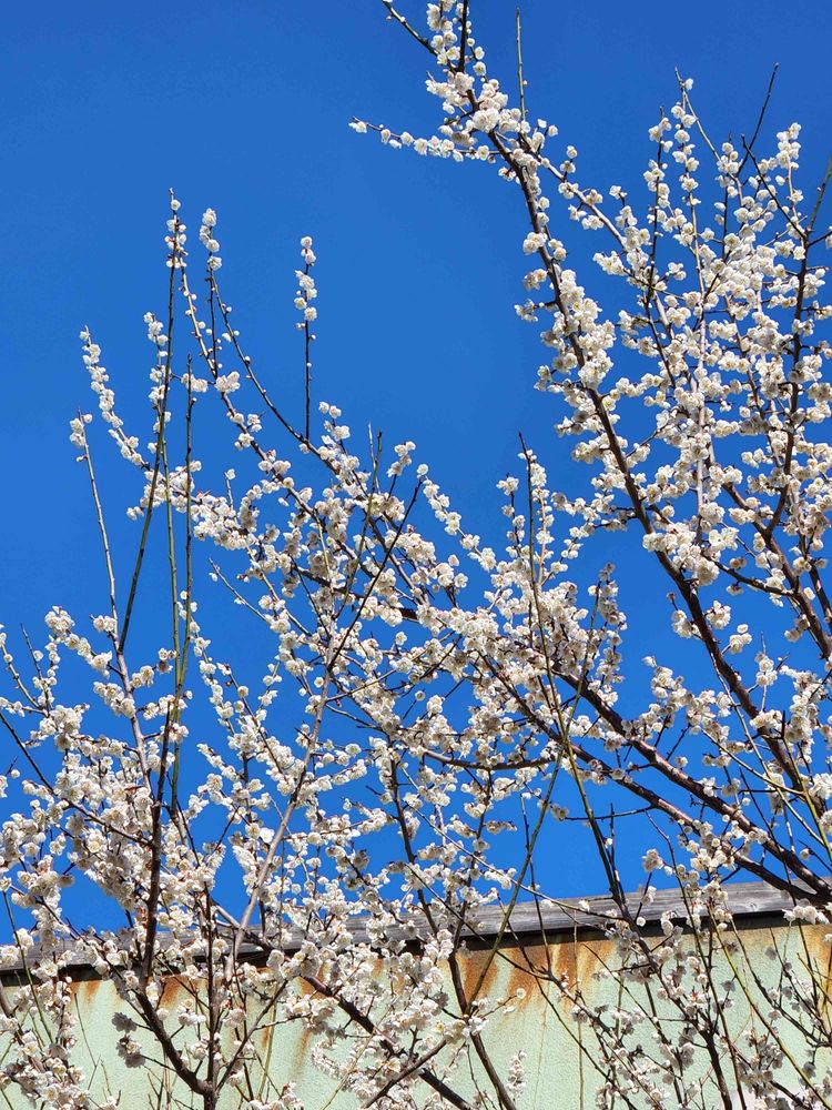 先日出かけた西郷団地の友人宅の白梅。青空に映えて、綺麗に咲いていた✨💖