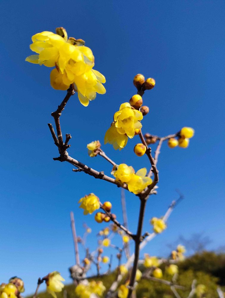 青い空に黄色のロウバイのおはなが映えてますね。🔵💛💙🟡