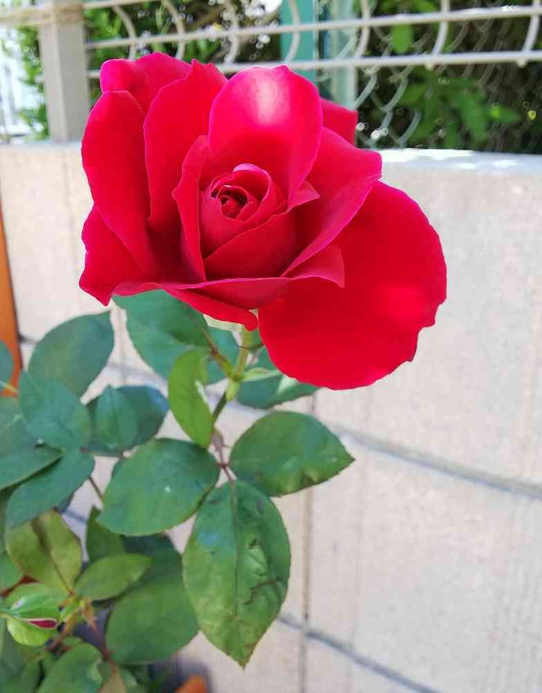 我が家のバラは私が好きなアプリコット系、黄色系がほとんどですが、この真っ赤なミスターリンカーンは主人チョイスです🌹