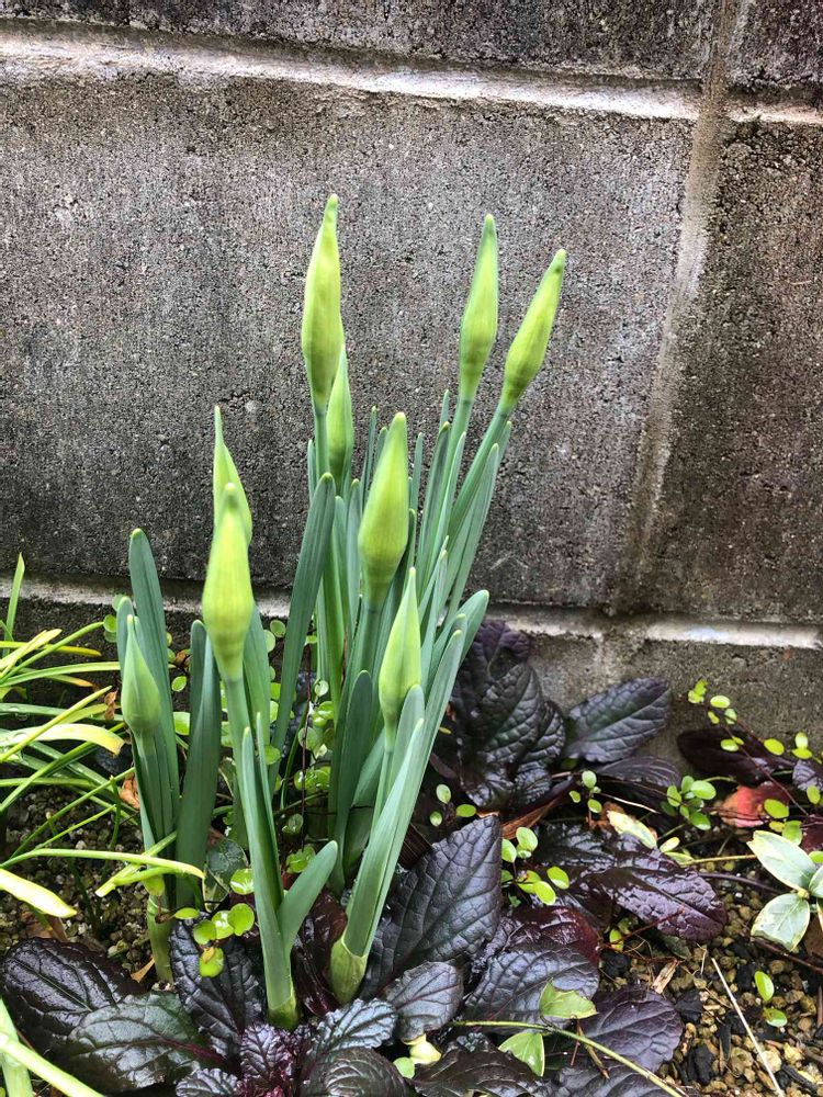 スーパーで蕾の状態の八重咲水仙を見つけて、購入したのですが、その年も次の年もそのままで咲かずに蕾のまま枯れちゃうんです🥲はい。でも年々大きくはなっているみたいなので、蕾と葉っぱのスッとした姿は素敵なので、少し切ない気持ちにはなるのですが、いろいろな子がいます。