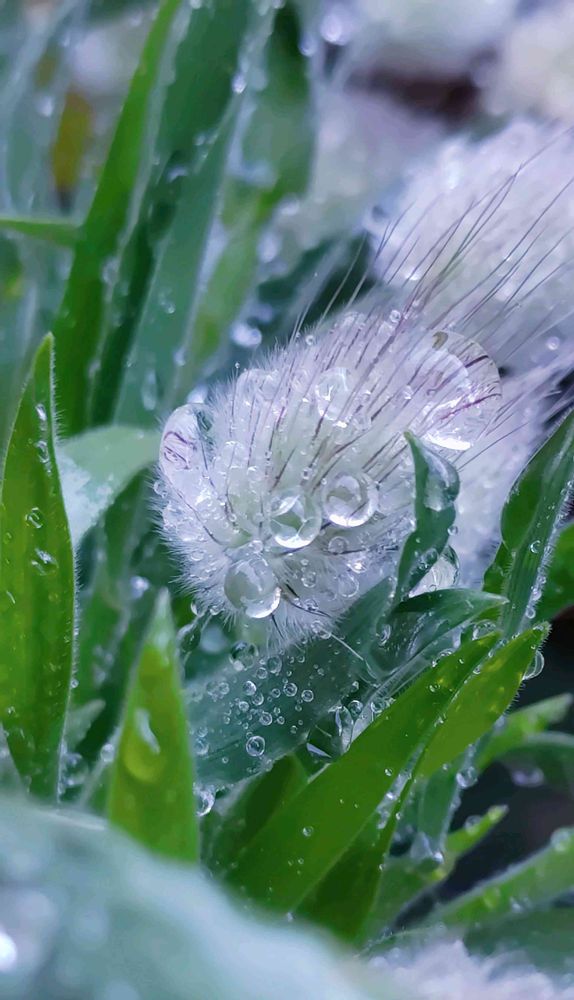 ラグラスさんが細い毛にまん丸ビーズを通しているみたいで