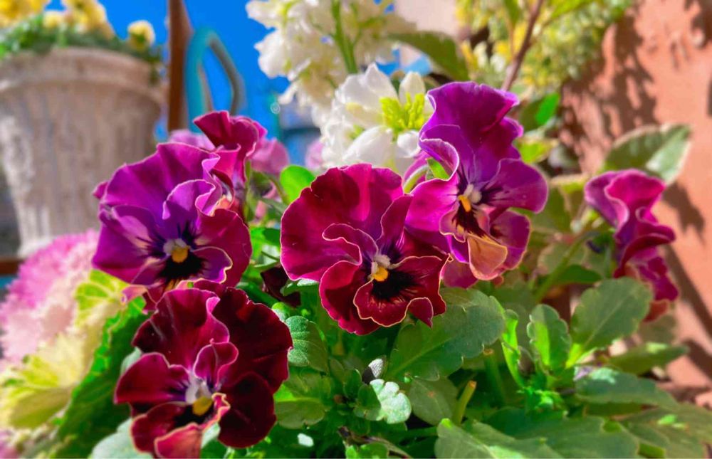 風にも負けずパンジーも花数が増えてきて賑やかになってたなぁ😌