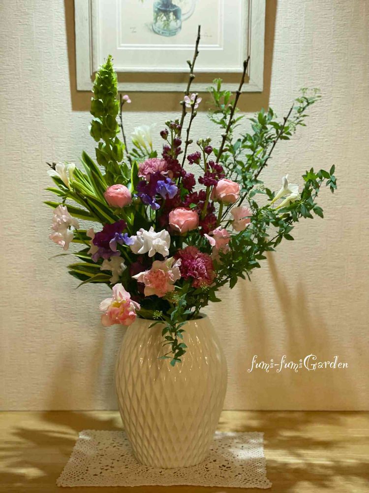 お客様がみえるのでウェルカムフラワーを頑張りましたっ 頑張ってくれたのはお花屋さんのお姉さん❣️