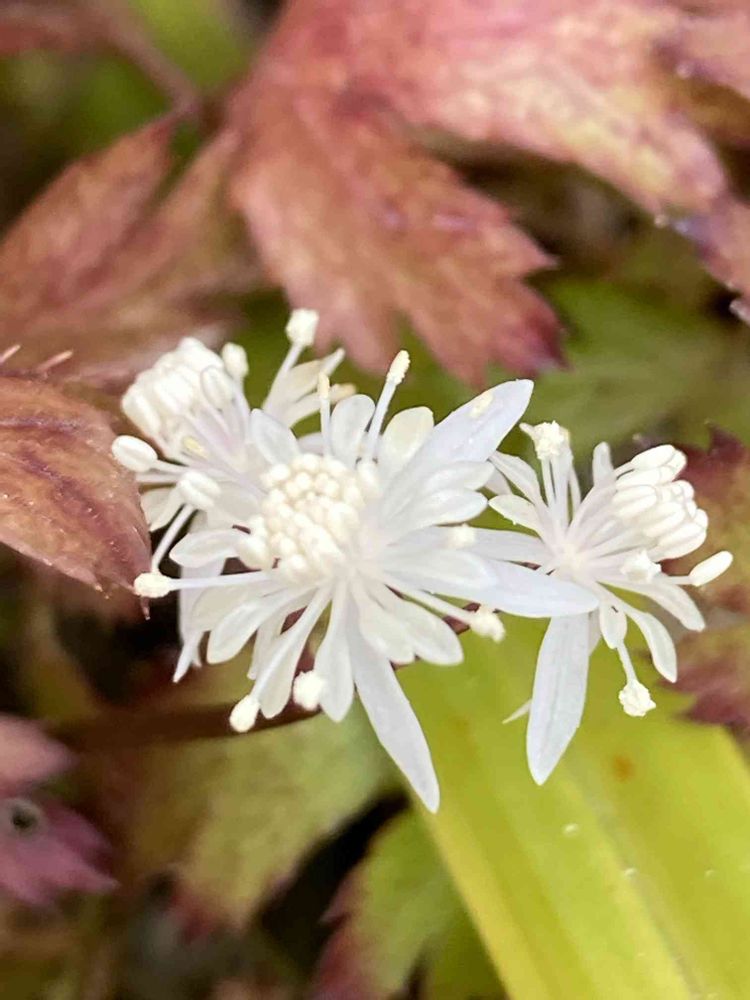 真っ白いセリバオウレンの花、とても綺麗ですね、雄花なのですね😍